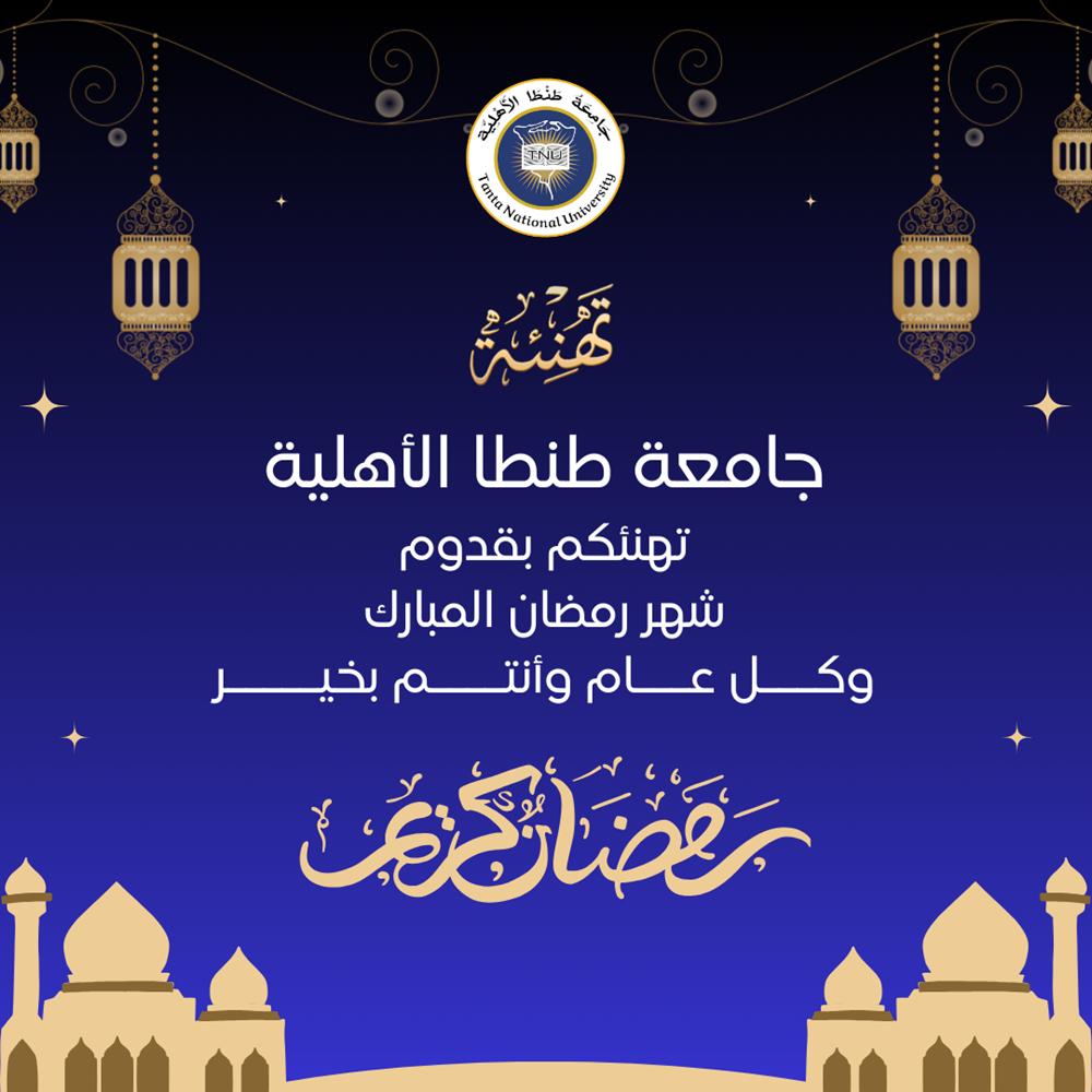بمناسبة حلول شهر رمضان المبارك، يتقدم الأستاذ الدكتور محمد حسين المكلف بتسيير أعمال جامعة طنطا الأهلية وأسرة الجامعة بأطيب التهاني وأصدق الأمنيات لأبنائنا وبناتنا الطلاب من مختلف الكليات.